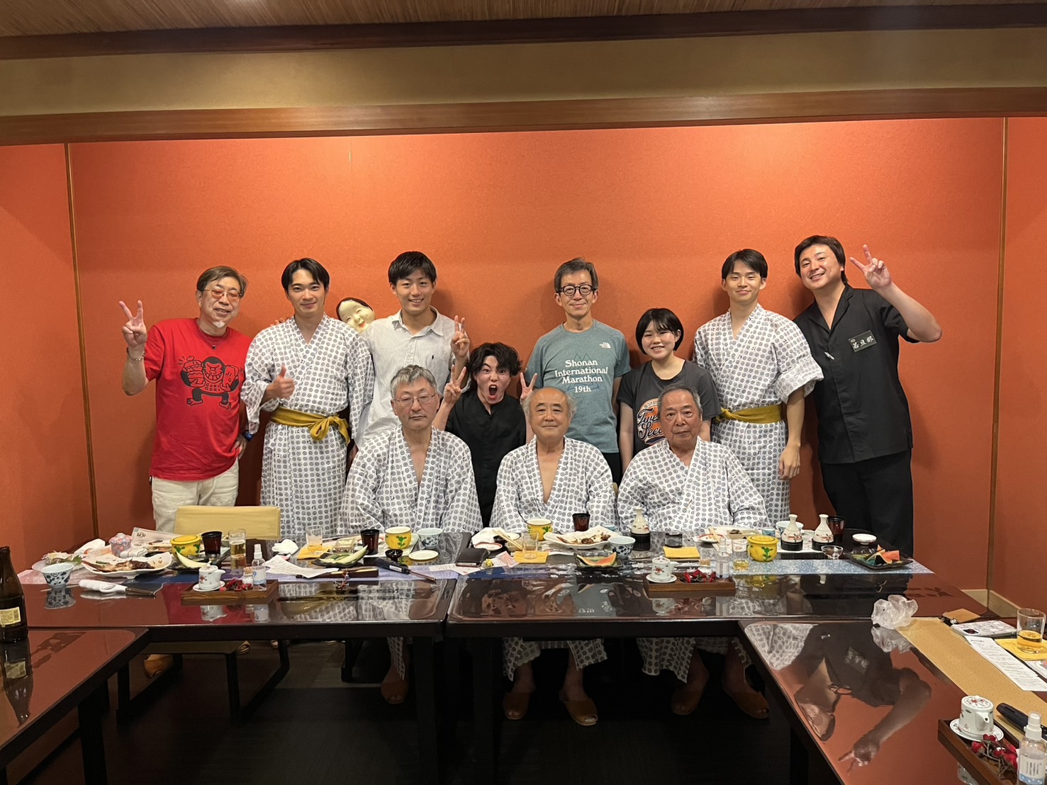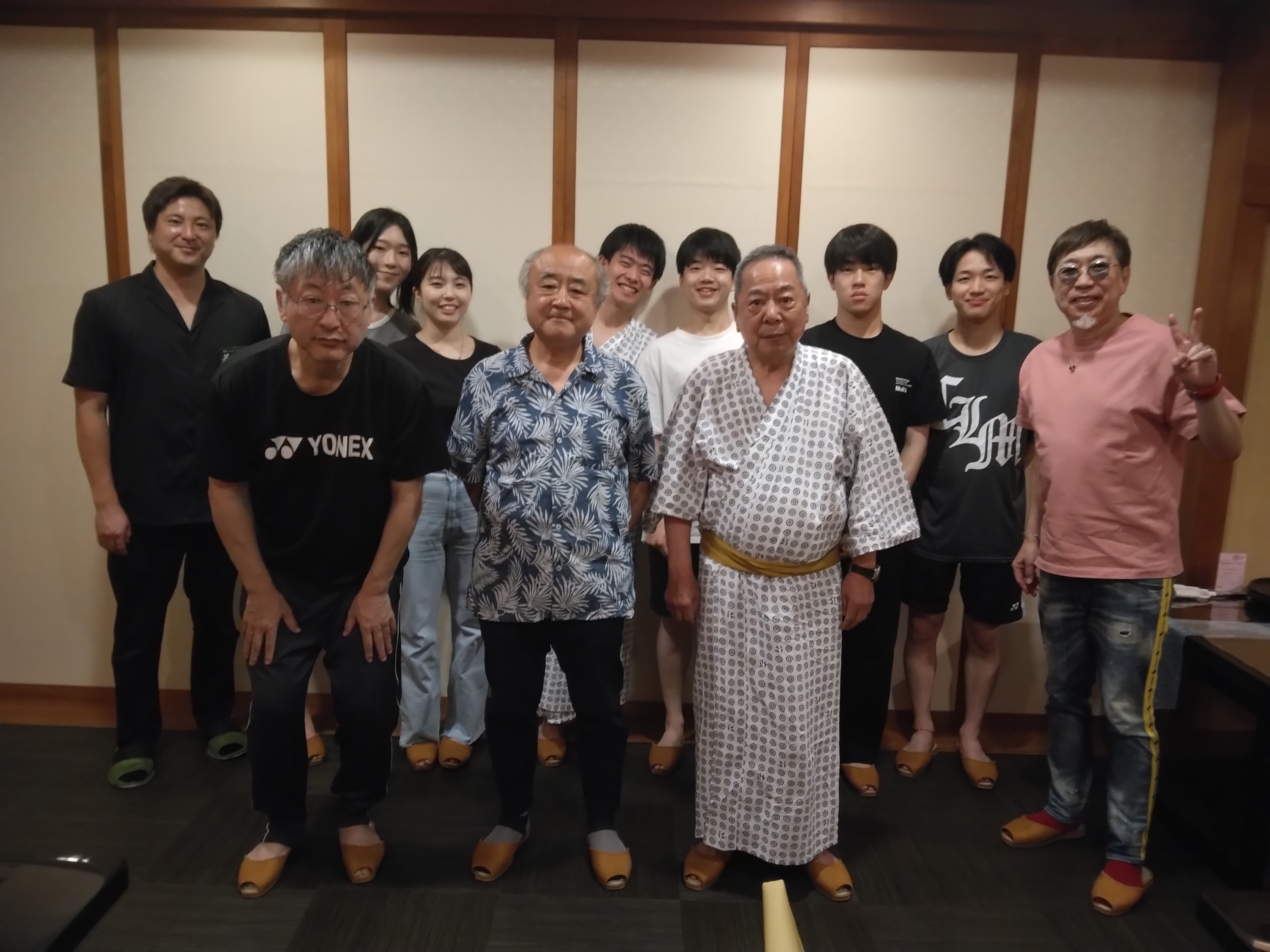 昨年度卒業生(高久、山下、原薗、各務、比嘉)、岩田監督、OB(鈴木英夫、諏訪芳博、永井直彦、草場)
